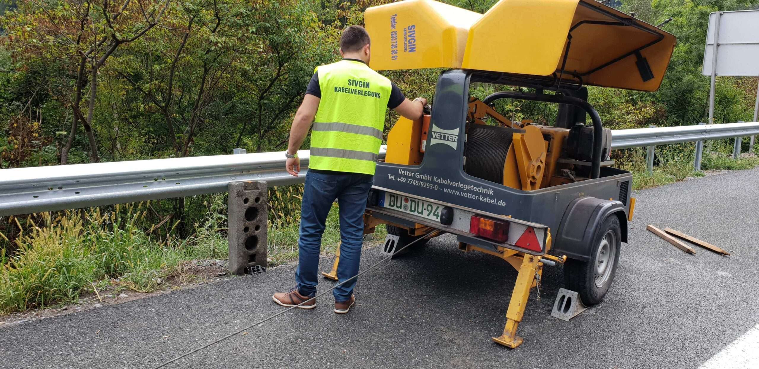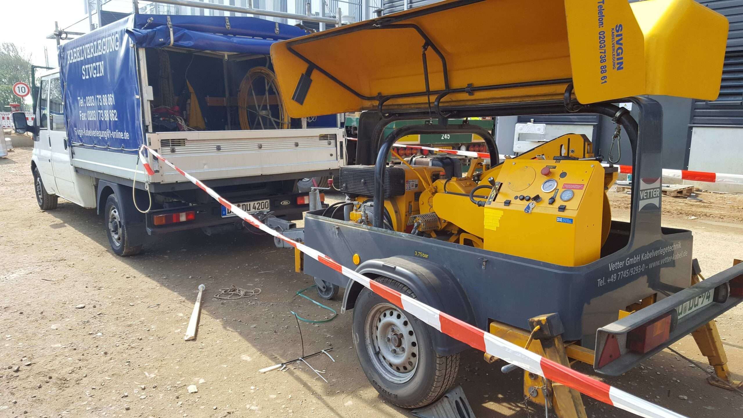 Firmeneigene Spezialfahrzeuge wie Kabelzugwinde oder Kabeltransportanhänger garantieren eine effiziente und reibungsfreie Auftragsabwicklung. Bei den erforderlichen Spezialwerkzeugen achten wir stets auf modernste Modelle, die in ausreichender Verfügbarkeit für jeden Einsatz vorhanden sind. Die zum Einsatz kommenden Geräte entsprechen höchsten Qualitäts- und Sicherheitsanforderungen. Wir stellen das komplette Equipment bereit: Zugmaschinen, Schubgeräte und Kabelzugwinden mit Diagrammen sowie sämtliche Hilfsmaterialien, die zum Kabelzug benötigt werden.